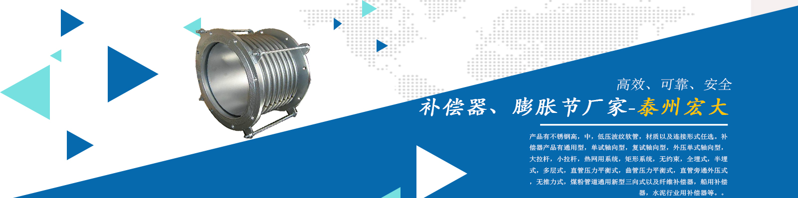 泰州市宏大機(jī)械設(shè)備有限公司是一個企業(yè)內(nèi)部管理嚴(yán)謹(jǐn),工作作風(fēng)穩(wěn)健,職工素質(zhì)水平較高,經(jīng)濟(jì)實(shí)力雄厚,產(chǎn)品質(zhì)量放心,外部形象良好的企業(yè)。本公司專業(yè)從事補(bǔ)償器廠家,膨脹節(jié)廠家,膨脹節(jié)補(bǔ)償器,其中有不銹鋼高,中,低壓波紋軟管,材質(zhì)以及連接形式任選。補(bǔ)償器產(chǎn)品有通用型,單試軸向型,復(fù)試軸向型,外壓單式軸向型,大拉桿,小拉桿,熱網(wǎng)用系統(tǒng),矩形系統(tǒng),無約束,全埋式,半埋式,多層式,直管壓力平衡式,曲管壓力平衡…...